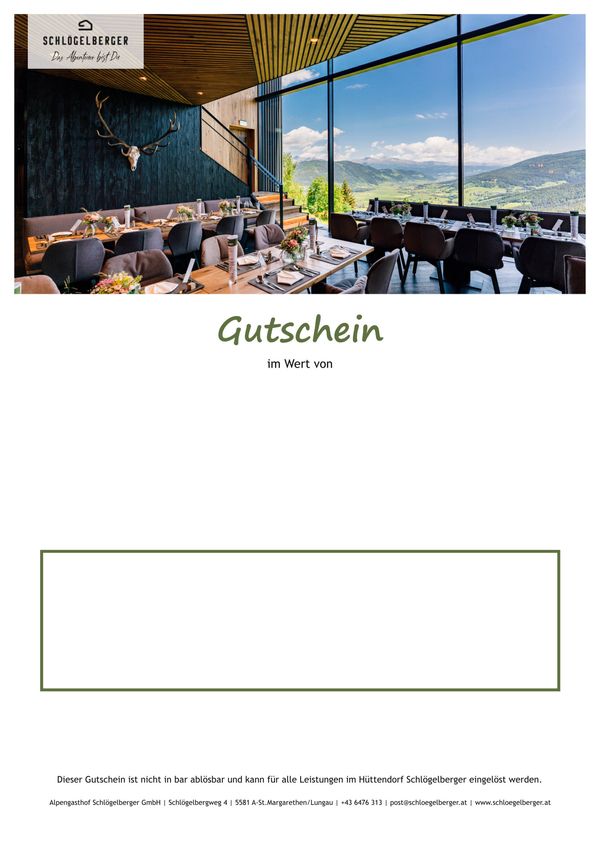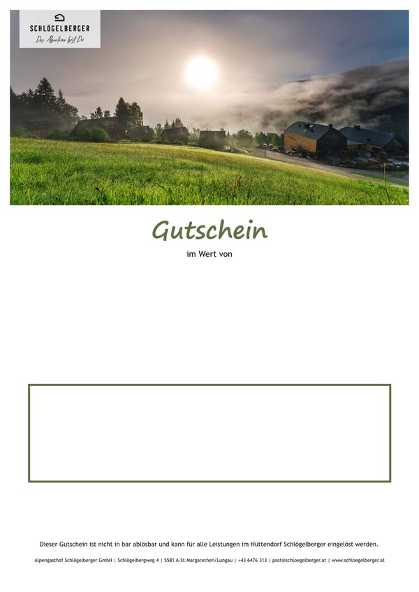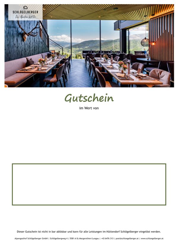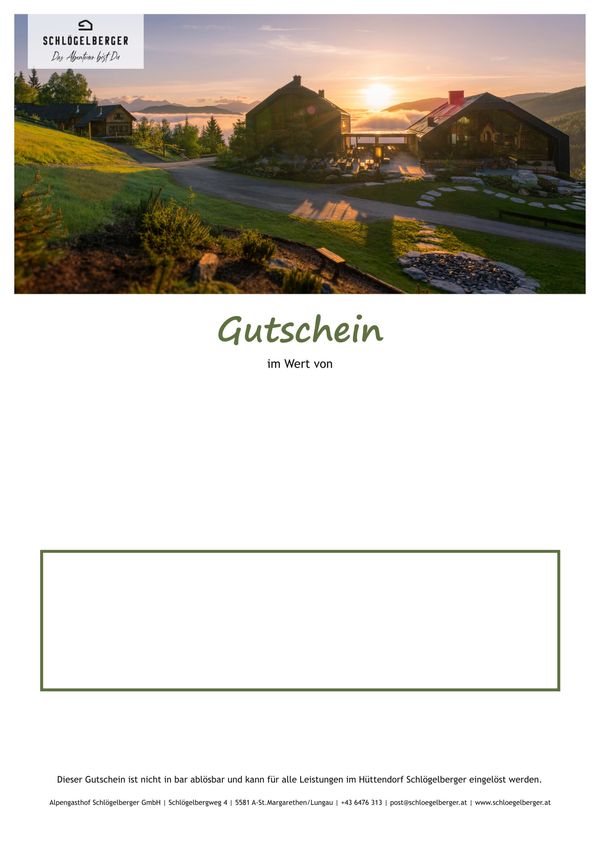 Mit dem Wertgutschein vom Hüttendorf Schlögelberger liegst Du in der Weihnachtszeit immer richtig.